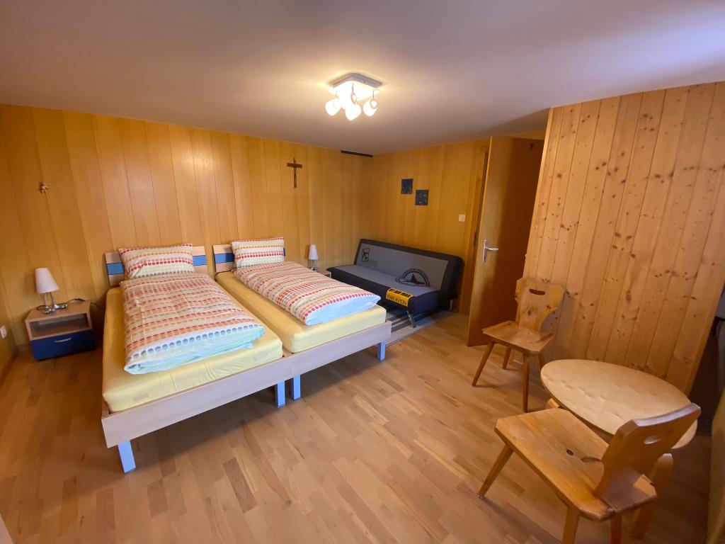 Die 4 Zimmer-Wohnung für 2-7 Personen befindet sich in der obersten Etage (3. Stock) eines MFH, bietet ausreichend Platz und hat eine traumhafte Rundsicht. Die Nichtraucher-Wohnung mit 107 m2 befindet sich nur 5 Minuten vom Dorfzentrum entfernt. Die Talstation der Hannigalpbahn sowie das Sportzentrum sind in unmittelbarer Nähe, d.h. ebenfalls in ca. 5 Minuten erreichbar. Die grosse und moderne Wohnküche ist praktisch eingerichtet. In einem separaten Leseraum haben sie einen schönen Blick auf das Seetalhorn. Die 2 Schlafzimmer verfügen jeweils über ein Doppelbett. Ein Wohn-/Schlafraum ist mit 2 Einzelbetten ausgestattet. Auf Wunsch wird ein Kinderbett sowie ein Reservebett bereit gestellt. Das Badezimmer verfügt über eine Badewanne, Waschtisch und WC. Das zweite Badezimmer ist mit einer Dusche und Waschtisch ausgestattet. Im Tages-WC ist eine Kleiderwaschmaschine vorhanden. Auf der Terrasse (Abendseite) haben sie die Möglichkeit eine schöne Aussicht über das ganze Dorf sowie die Walliser Bergwelt zu geniessen. Zufahrt zum Ein- und Ausladen ist gestattet. Haustiere nicht erlaubt.