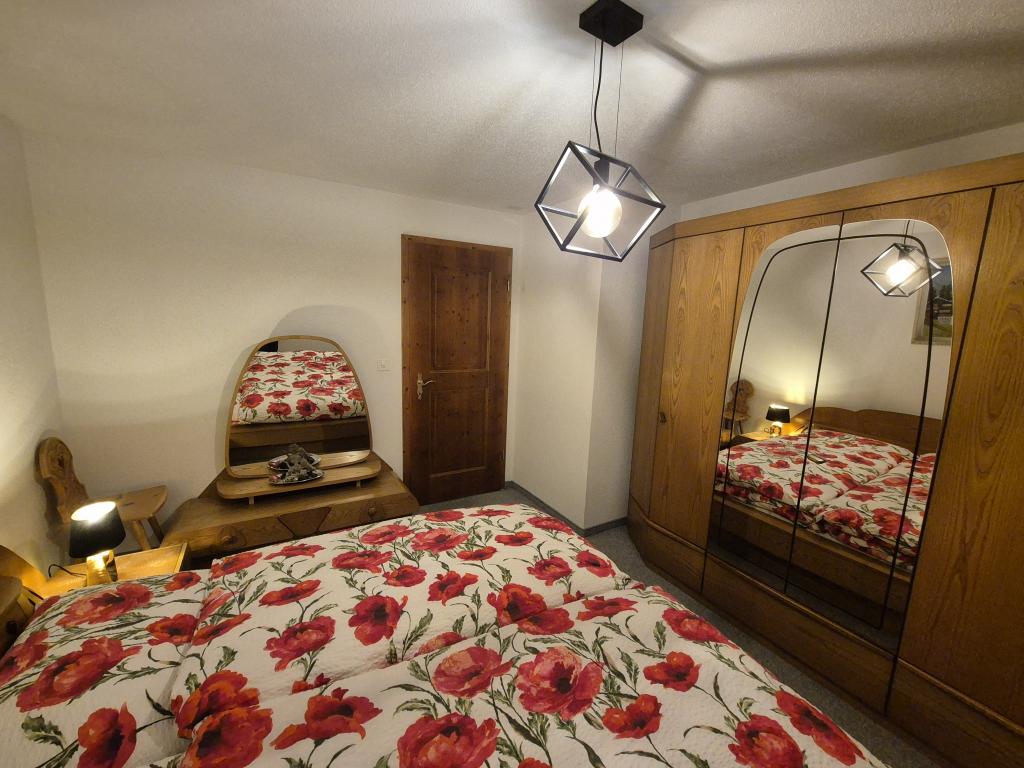 Die Wohnung liegt im 1. Obergeschoss und verfügt über ein Schlafzimmer mit 2 Betten, einer offenen Küche, einem Erker mit Esstisch, ein grosses Wohnzimmer mit 2 Schrankbetten, Sofa, TV und Gratis WLAN.