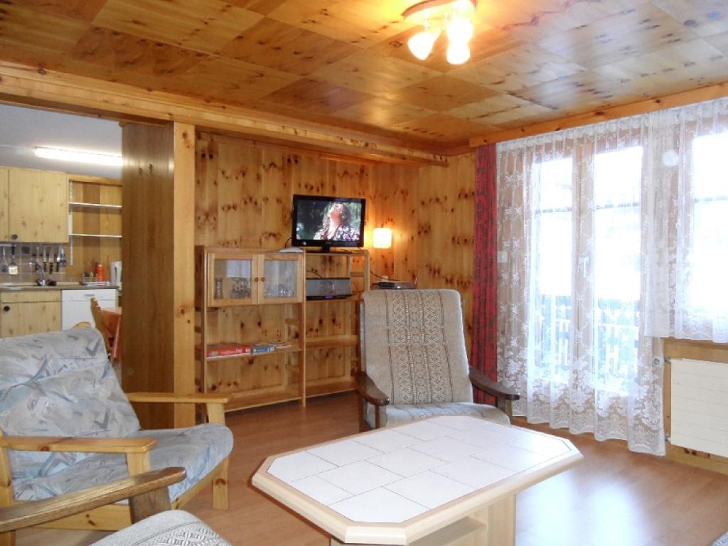 Die Wohnung enthält Ess-Küche, Wohnzimmer, Dusch/WC und Bad/WC, zwei Doppelzimmer mit einem Zusatzbett für eine 9. Person und ein 4-Bett Zimmer mit einem Kajütenbett und einem Doppelbett. Sie schlafen in nordisch Bettwäsche. Die Küche hat alle gängigen Einrichtungen. Geschirrspüler, Racletteofen, Fonduerechaud und Nespresso-/Kaffeemaschine. Küchen- Hand- und Badetücher sind vorhanden. Wer nicht TV schauen, oder Musik hören will, kann sich in der hauseigenen Sauna entspannen. Der Hausherr ist auch Masseur. Sonnen können Sie sich auf dem Balkon oder auf der 70 m2 grossen Terrasse. Die Kinder sind mit viel Freiraum weg von der Strasse. Skiraum mit Skischuhheizung. Im Preis inbegriffen ist der Parkplatz. Exklusiv sind Kurtaxe, Endreinigung Fr.120.- und Bettwäsche Fr.15.- pro Bett. Besuchen Sie auch unsere Homepage auf dem unten stehenden Link.