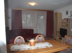 Wohn- Esszimmer mit Eckpolstergruppe, Esstisch mit ausziehbarem Bank und Stühlen. Buffet mit Kabel-TV und CD-Spieler. Küche komplett eingerichtet mit Geschirrspüler, Mikrowelle, Nespressomaschine, Glaskeramikherd, Fondue-Set, Racletteofen und Fondue-Chinoise-Set.