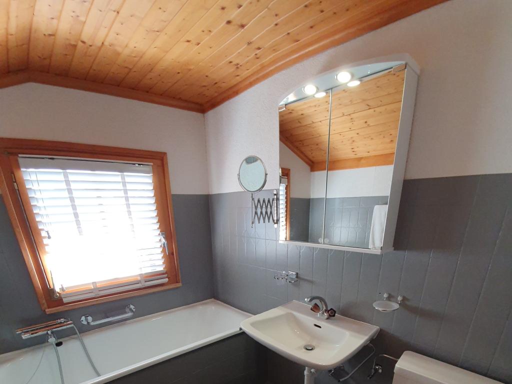 Balkon/Sonnenterasse Süd/West, Garten 50 m2. Sehr ruhige Lage mit traumhafte Aussicht auf die umliegende Bergwelt. Herrliche Umgebung zum Spielen für Ihre Kinder, kein Verkehr. Vom Haus weg kann man direkt schlitteln. Auch beliebt bei wandern im Sommer. (Max 6 pers.) (Haustiere nicht erlaubt) Gratis Internet Wifi.