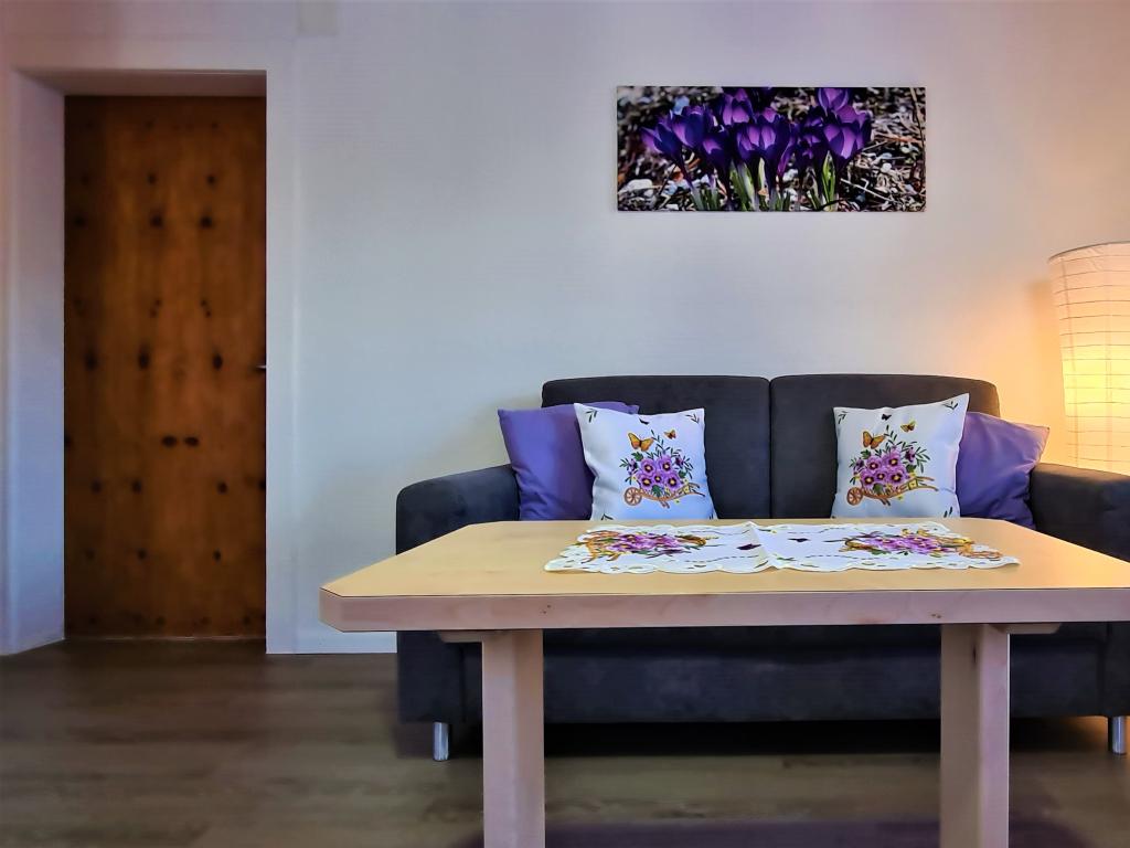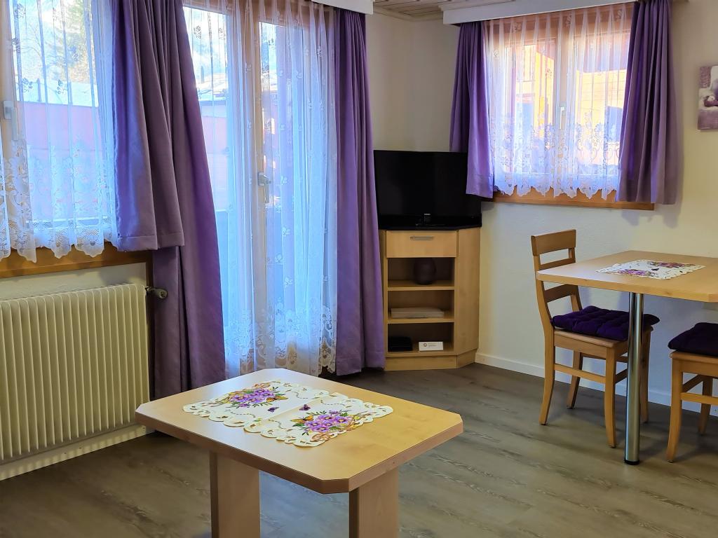 Die 2 Zimmerwohnung liegt im 1.Stock. Sie besteht aus einem grossen Doppelzimmer mit zwei gemütlichen Stühlen zum Relaxen, einem Wohn- Esszimmer, einer offenen Küche mit Keramikkochfeld,Backofen, Dampfabzug, Geschirrspüler, Dusche und WC, Balkon auf der Ost- und Südseite.