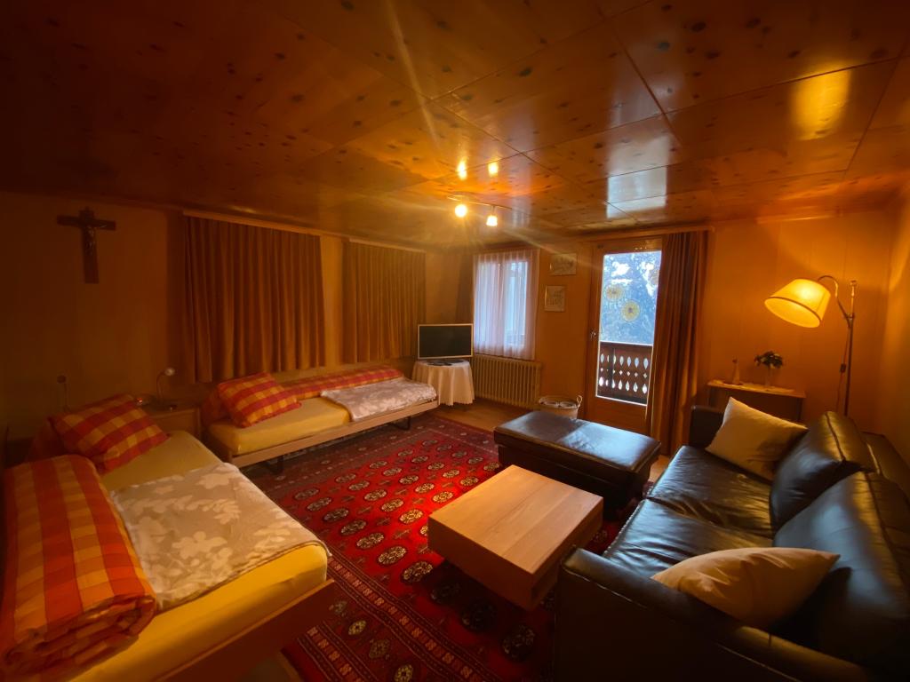 Die 4 Zimmer-Wohnung für 2-7 Personen befindet sich in der obersten Etage (3. Stock) eines MFH, bietet ausreichend Platz und hat eine traumhafte Rundsicht. Die Nichtraucher-Wohnung mit 107 m2 befindet sich nur 5 Minuten vom Dorfzentrum entfernt. Die Talstation der Hannigalpbahn sowie das Sportzentrum sind in unmittelbarer Nähe, d.h. ebenfalls in ca. 5 Minuten erreichbar. Die grosse und moderne Wohnküche ist praktisch eingerichtet. In einem separaten Leseraum haben sie einen schönen Blick auf das Seetalhorn. Die 2 Schlafzimmer verfügen jeweils über ein Doppelbett. Ein Wohn-/Schlafraum ist mit 2 Einzelbetten ausgestattet. Auf Wunsch wird ein Kinderbett sowie ein Reservebett bereit gestellt. Das Badezimmer verfügt über eine Badewanne, Waschtisch und WC. Das zweite Badezimmer ist mit einer Dusche und Waschtisch ausgestattet. Im Tages-WC ist eine Kleiderwaschmaschine vorhanden. Auf der Terrasse (Abendseite) haben sie die Möglichkeit eine schöne Aussicht über das ganze Dorf sowie die Walliser Bergwelt zu geniessen. Zufahrt zum Ein- und Ausladen ist gestattet. Haustiere nicht erlaubt.