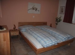 Elternschlafzimmer mit Doppelbett (2 Matratzen), Kommode sowie grossem Kleiderschrank. Kinderzimmer mit einem Einzelbett und einem Etagenbett. Nasszelle: Lavabo, Badewanne und Toilette sowie zwei Badezimmermöbeli. Waschmaschine im UG zur Mitbenützung (Geldautomat), Lift im Hause. Parkplatz in der Tiefgarage mit direktem Zugang zur Wohnung CHF 10.-- pro Tag