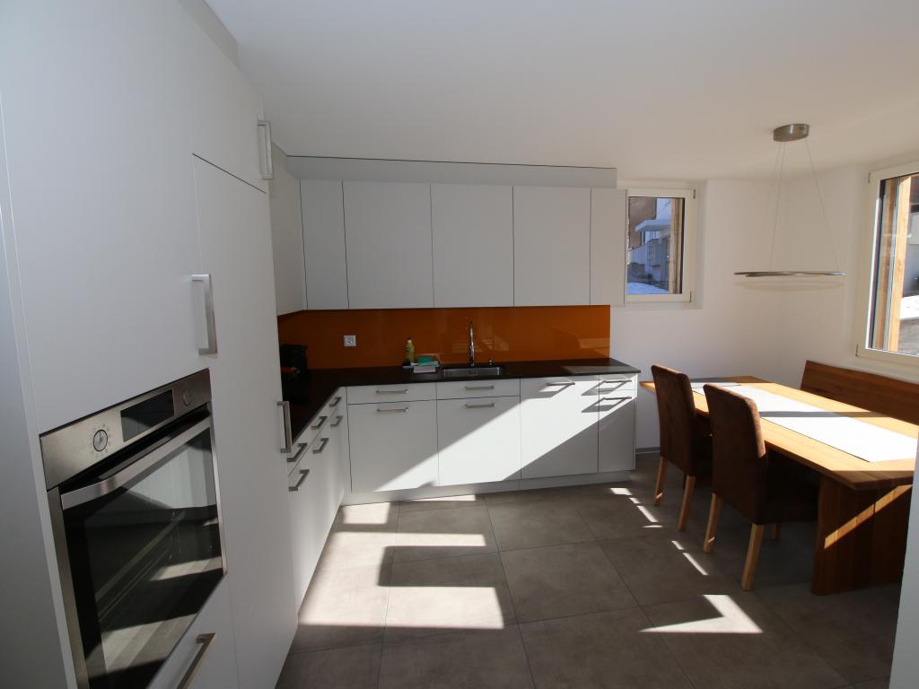 Grosszügige 3 1/2 Zimmer-Wohnung mit Einbauküche, begehbarer Dusche und Gäste-WC. Neubau 2021, mit einem grosszügigen Platzangebot. Wohnfläche 95 qm, Induktionsherd, Quooker (Heisswasser-Boiler 3l), Kaffee-Maschine, Toaster, Raclette-Ofen, Fondue-Rechaud, etc.